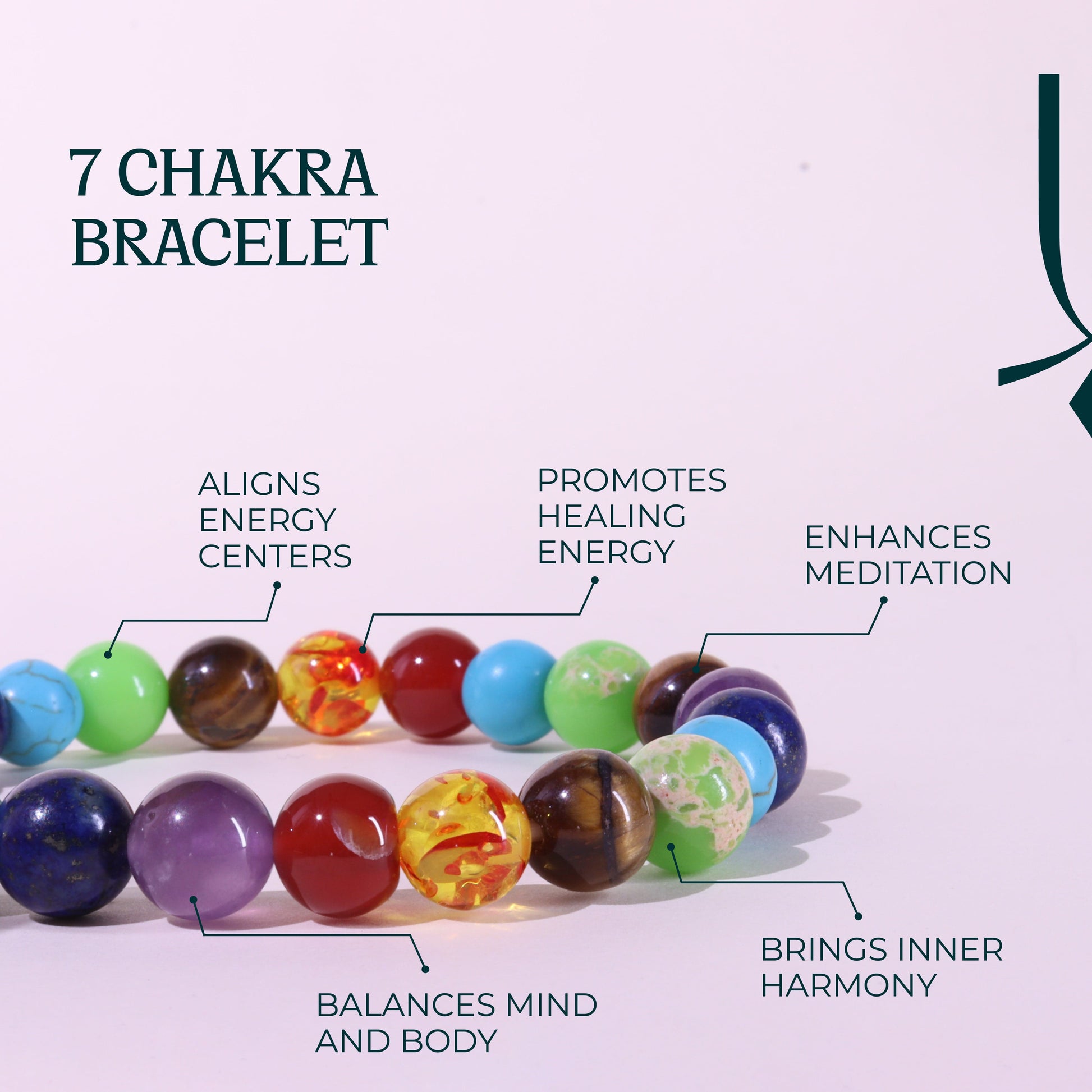 This multicolored stone bracelet aligns and balances all 7 chakras: root, solar, heart, throat, third eye, crown, and sacral. It's a perfect combination for overall energetic harmony, meditation and personal growth