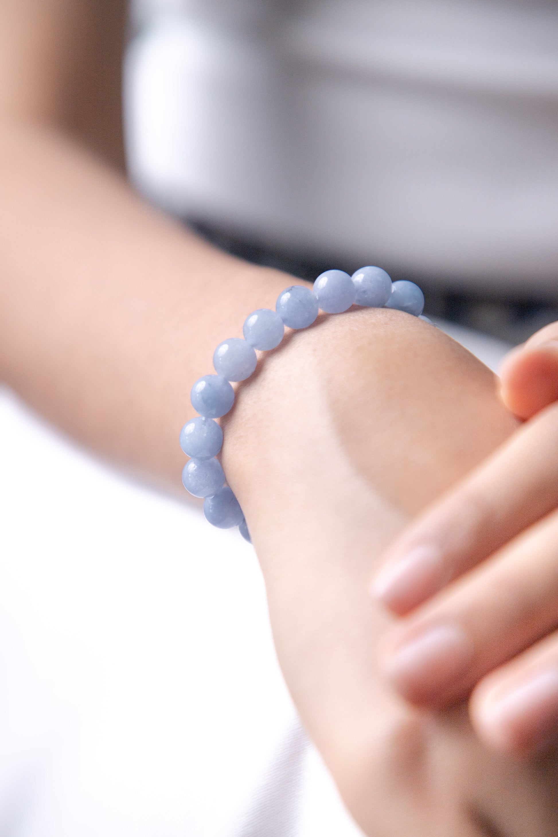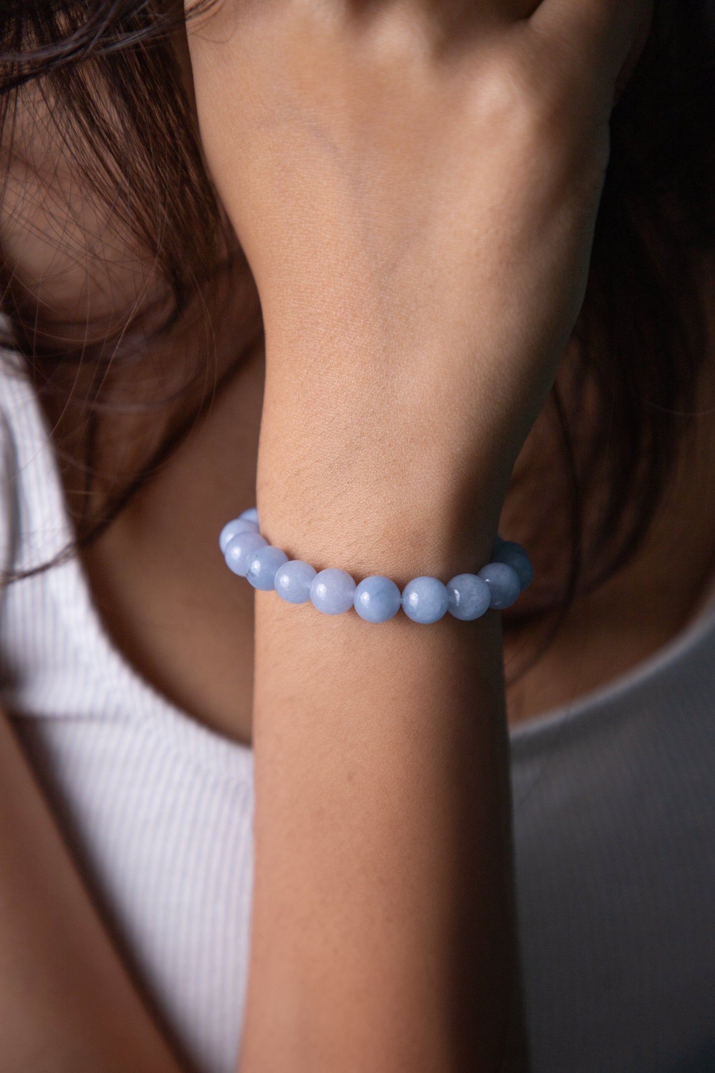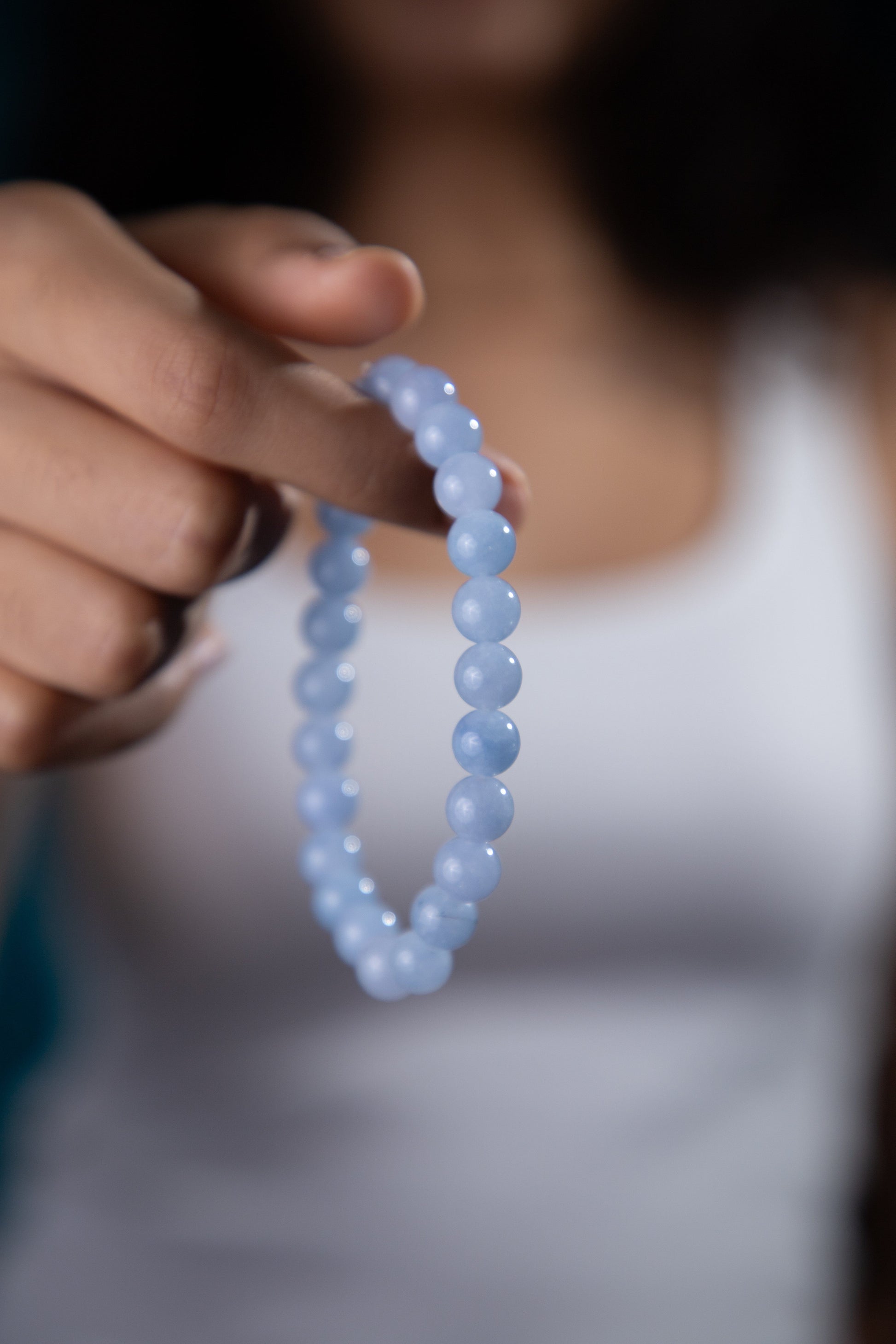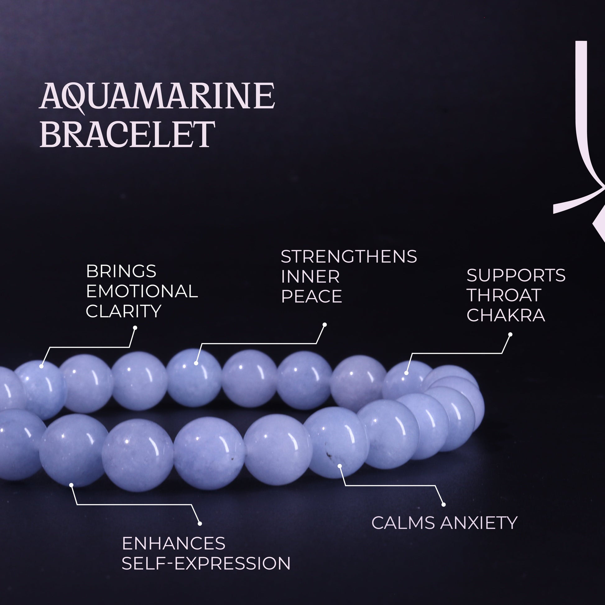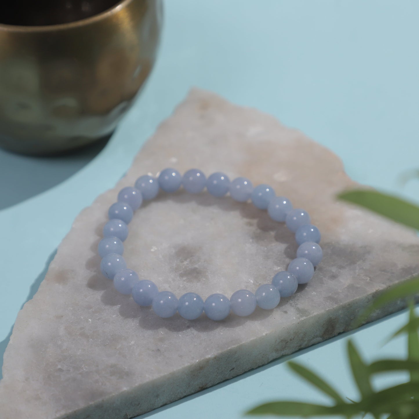 The color of aquamarine is ocean-like and calming and soothes the mind, reduces stress, and gives mental clarity. Wearing an aquamarine stone bracelet enhances communication and courage and gives confidence.