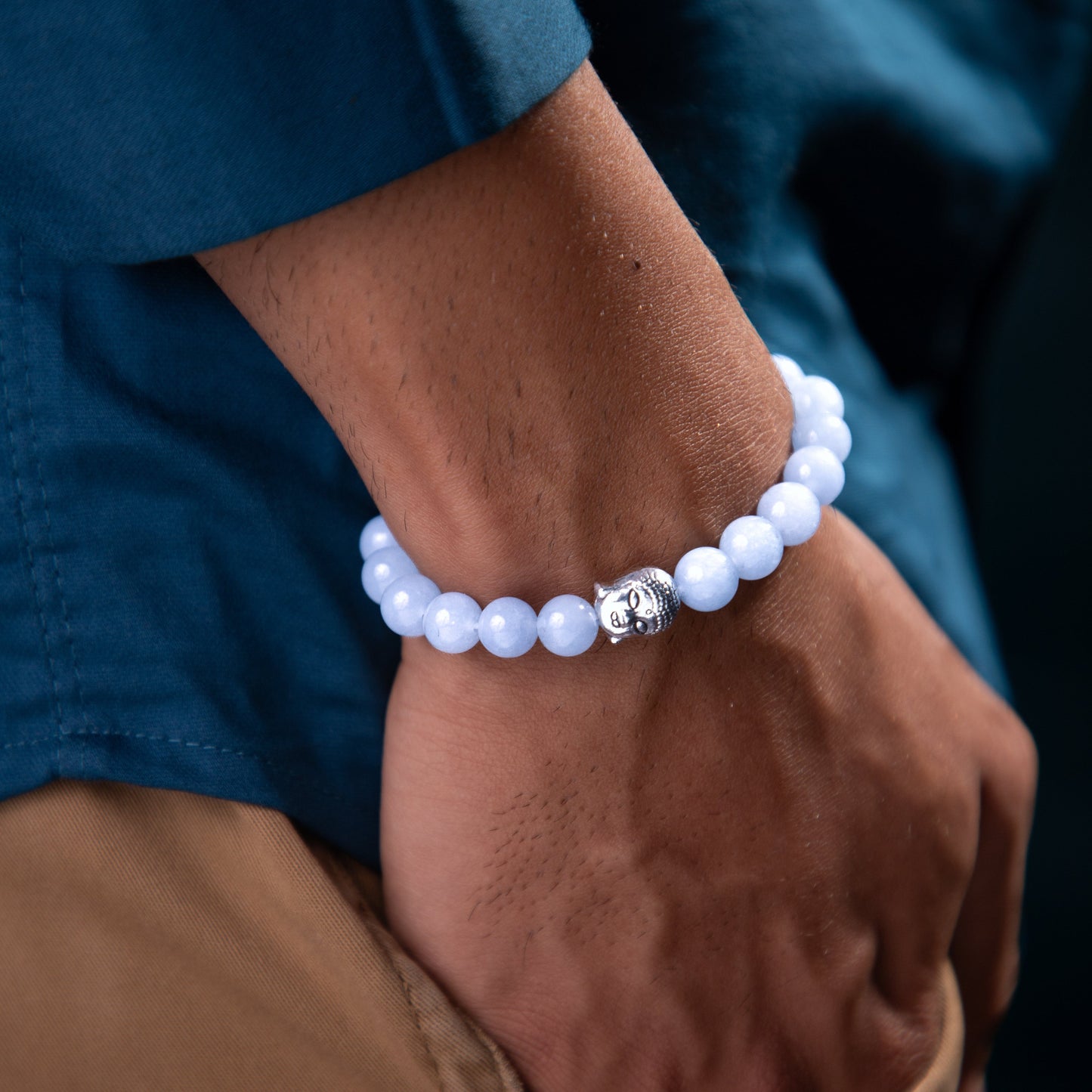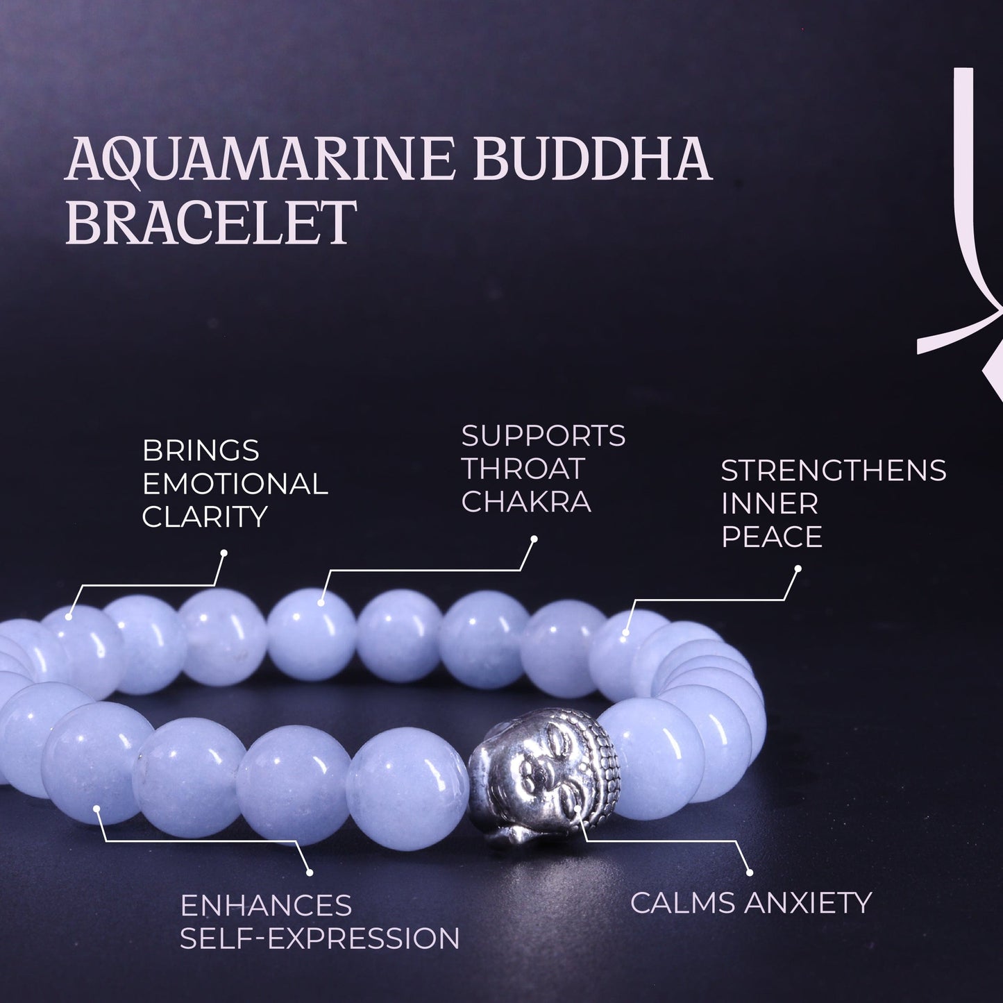BuddhaThe Aquamarine stone braceler when combines with the buddha bead - Aquamarine brings emotional clarity, calms anxiety, while the buddha bead gives peace and mindfulness. The bracelet serves as a reminder to stay grounded, gives courage and confidence