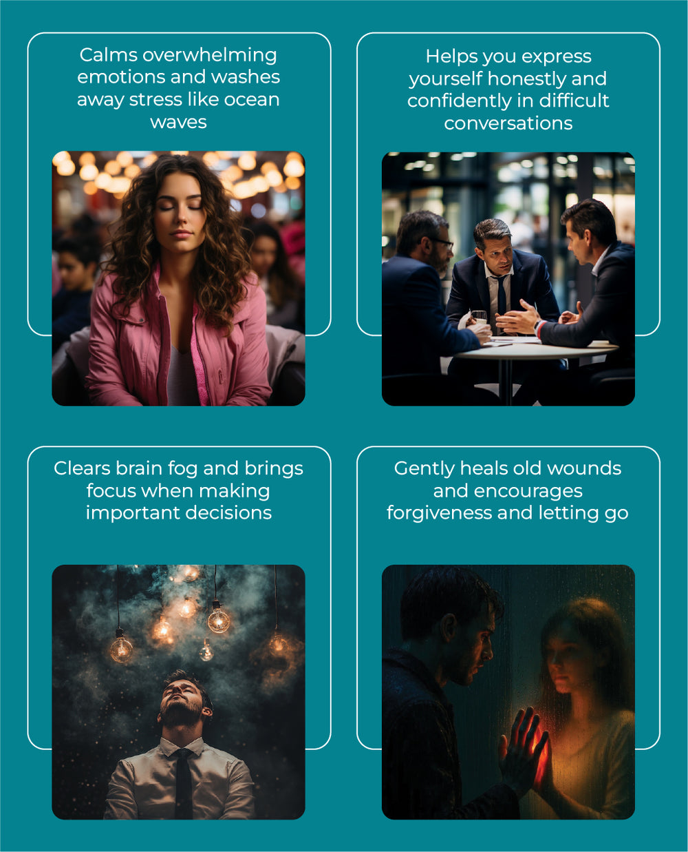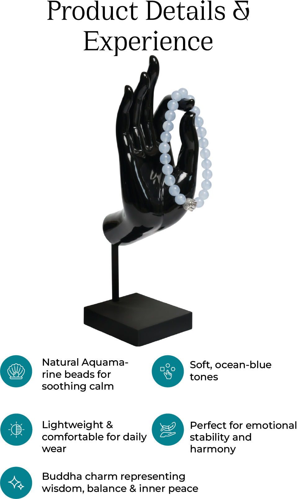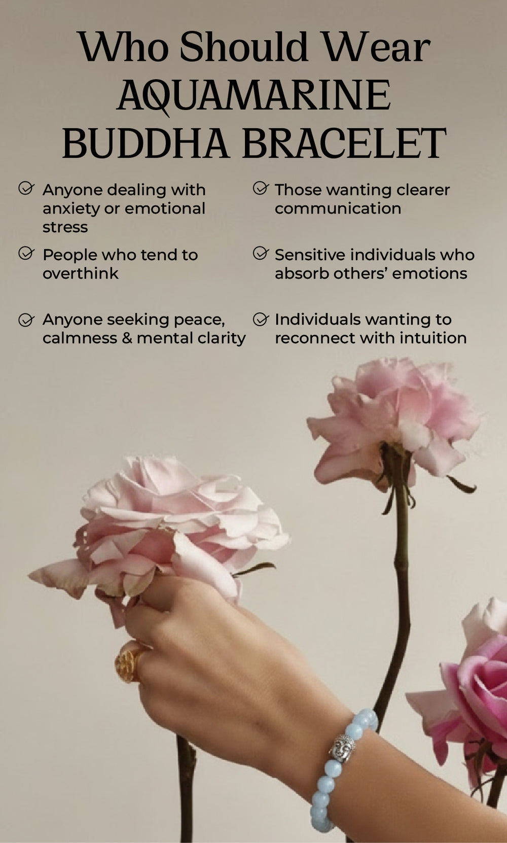 Aquamarine is known as the stone of serenity—cooling emotional storms and restoring clarity. Paired with the Buddha charm, it becomes a symbol of calm wisdom and gentle protection.