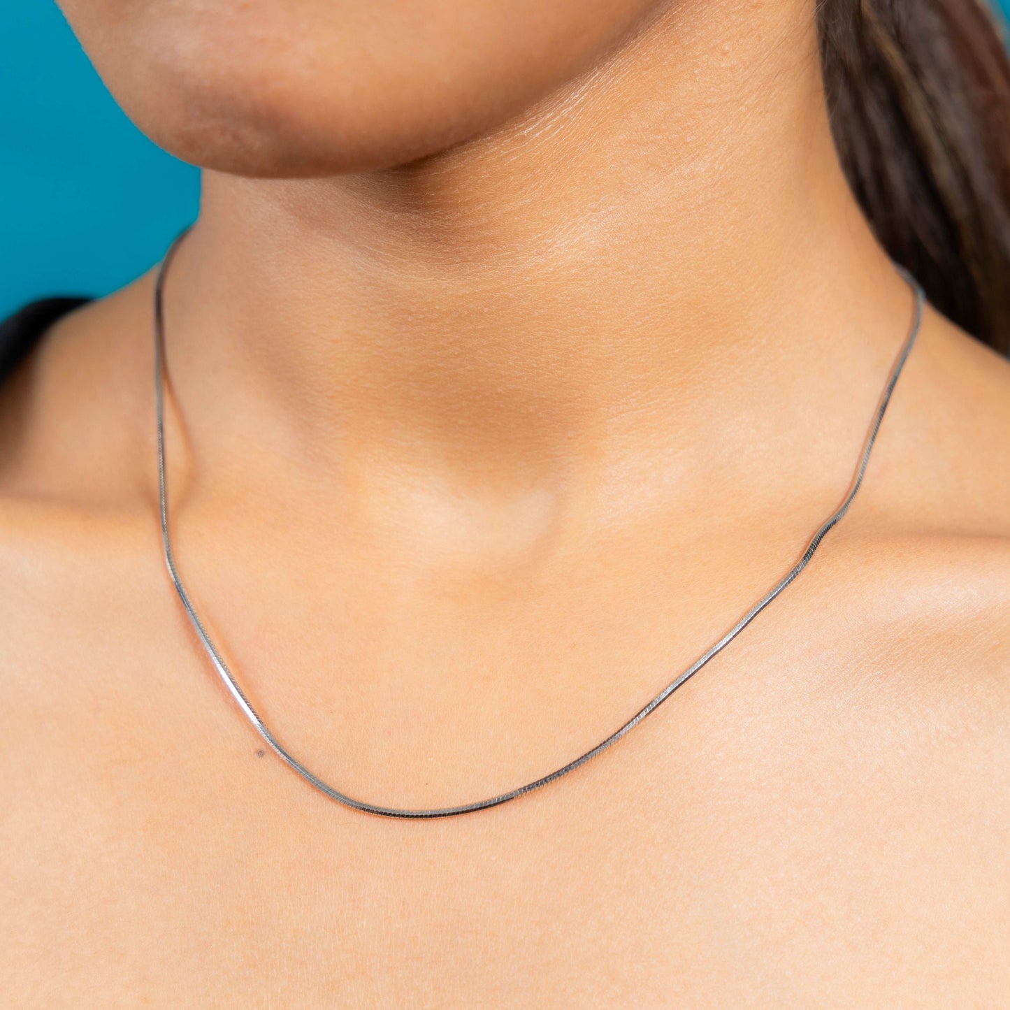 A sleek, shining silver chain made in Italy and rhodium plated that effortlessly enhances your style with its graceful simplicity.