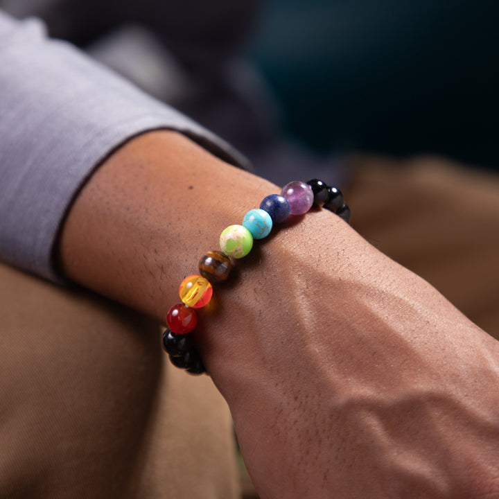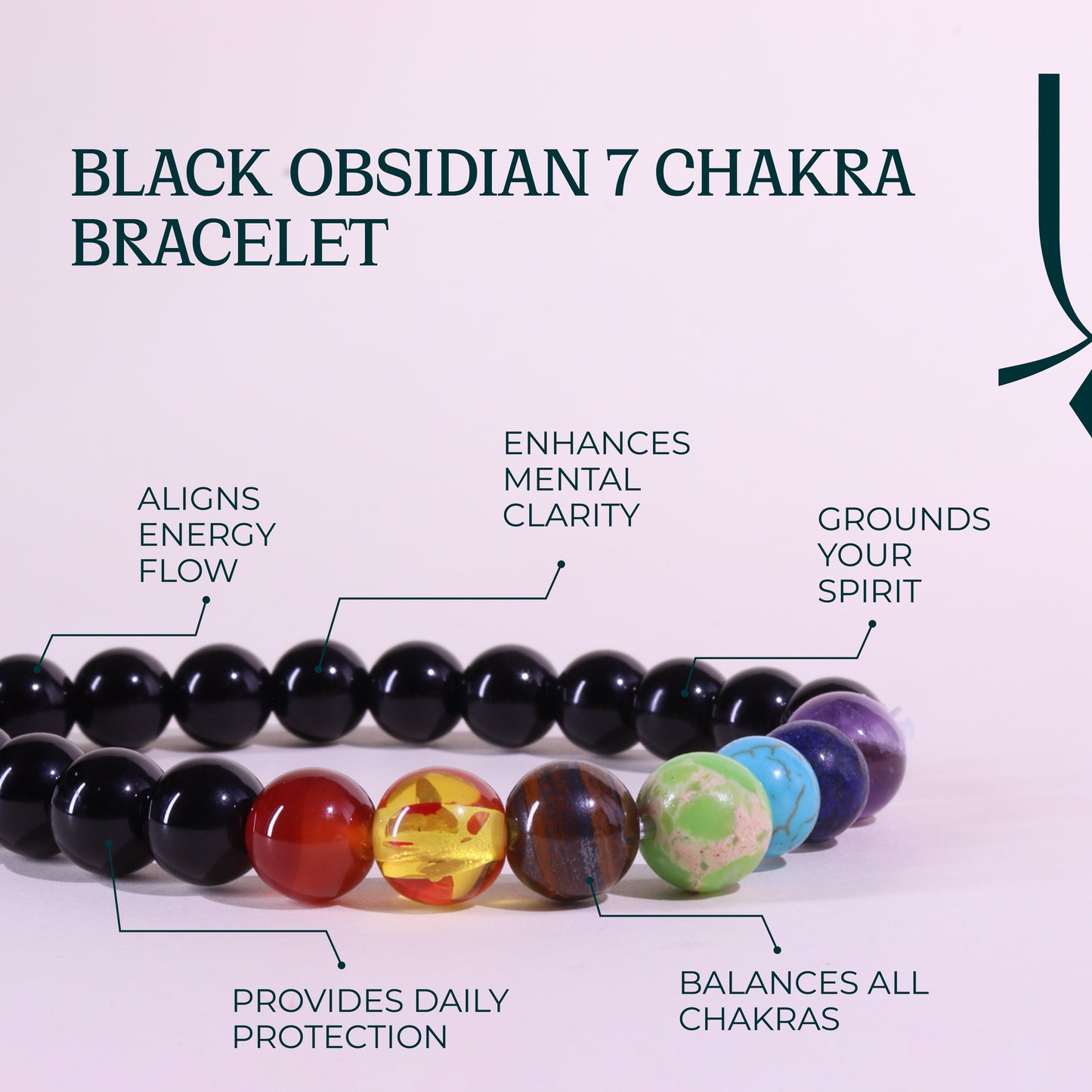 This Black Obsidian 7 Chakra Bracelet combines the protective energy of black obsidian with 7 chakra stones that represent the seven energy centers of the body. It's perfect for those looking for balance in their life while staying away from negativity