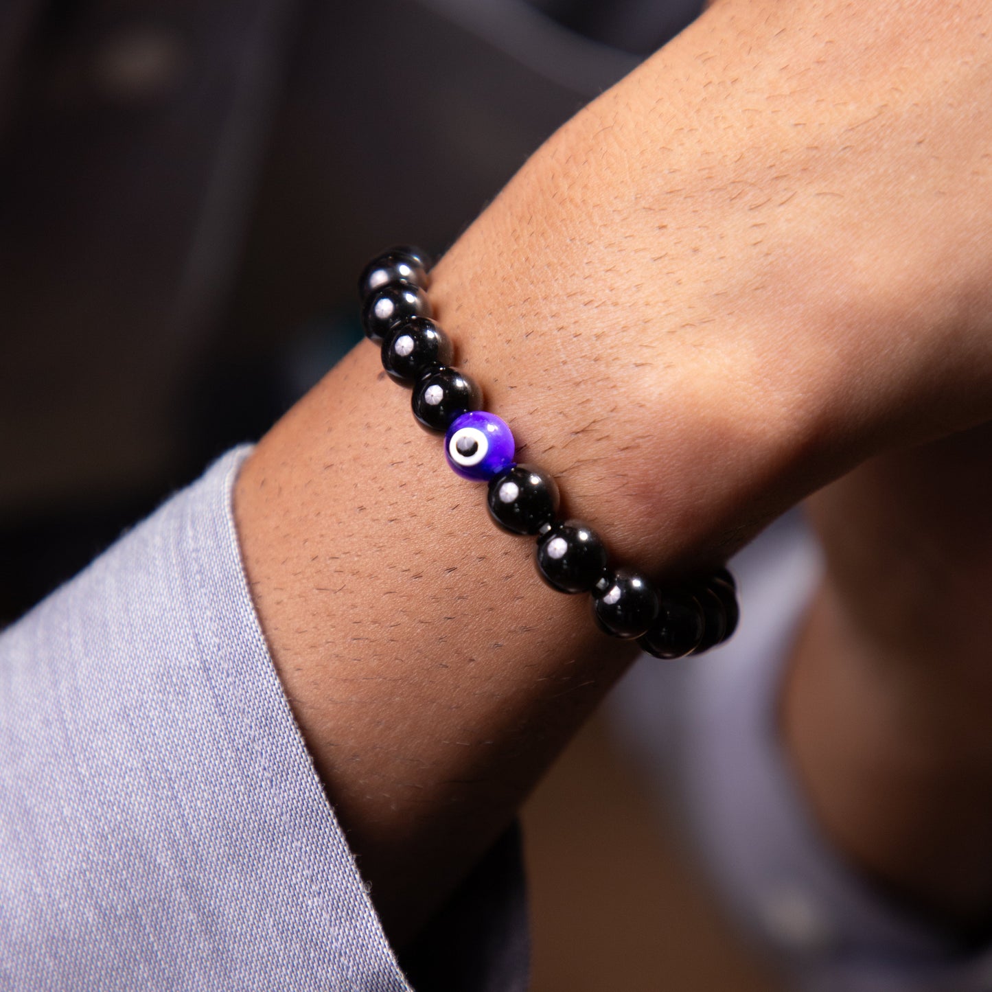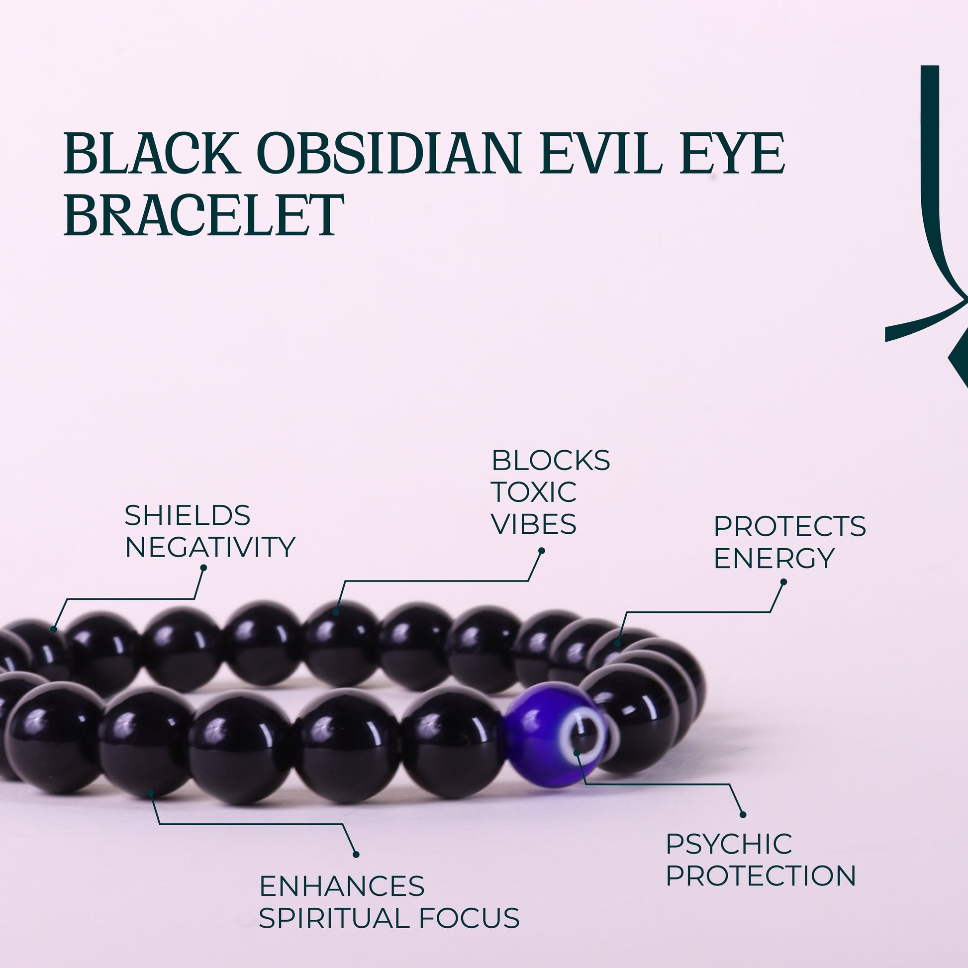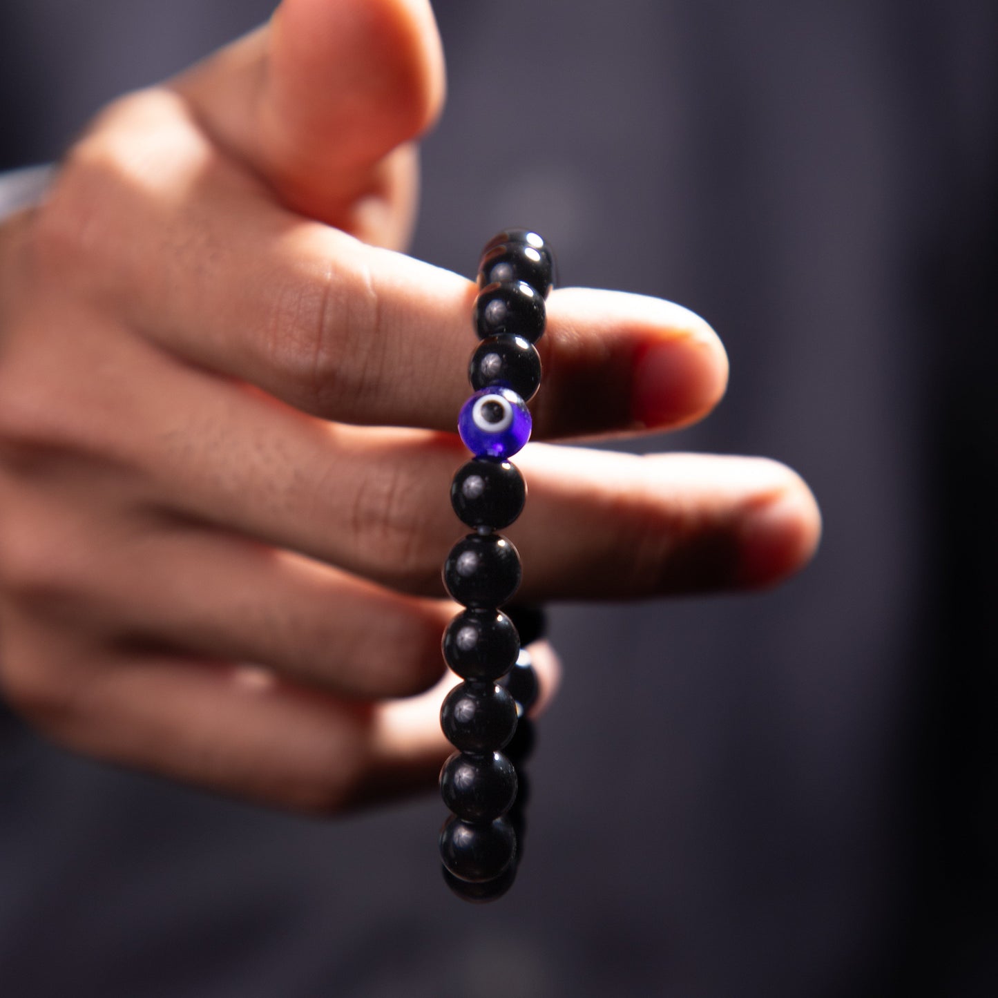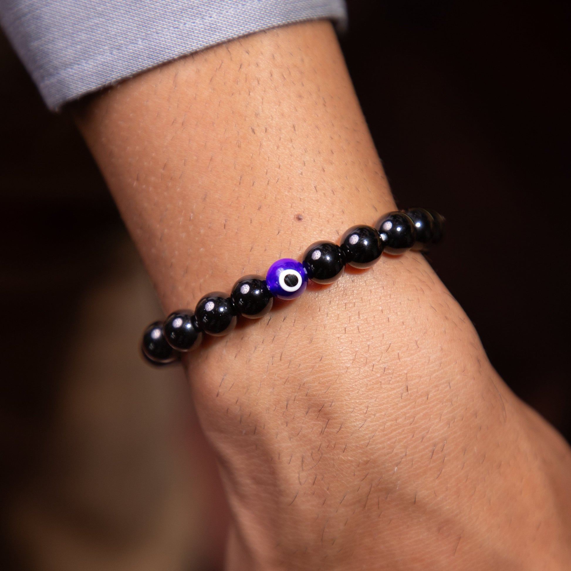 The black obsidian bracelet gives grounding power, and the evil eye gives protection. It helps in removing negative energy and toxicity and helps you stay focused and strong and enhances intuitions.