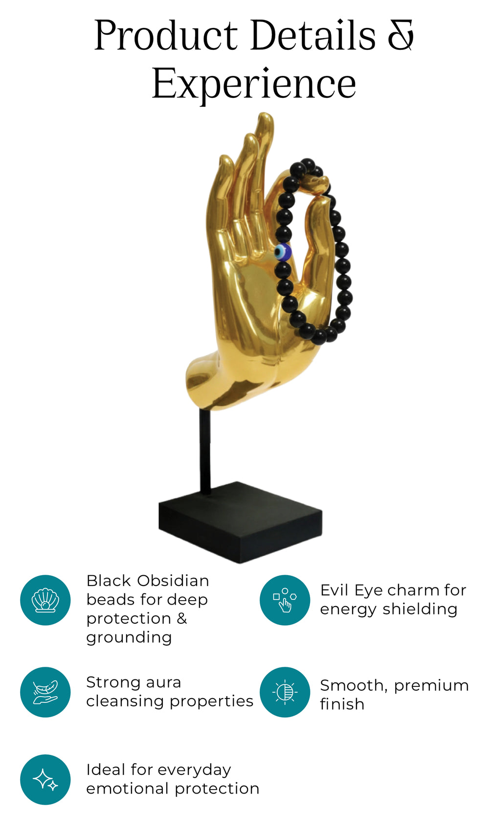 This bracelet combines the deeply grounding power of Black Obsidian with the protective strength of the Evil Eye. Together, they create one of the strongest shields against negativity, keeping your mind clear, your emotions steady, and your energy protected.