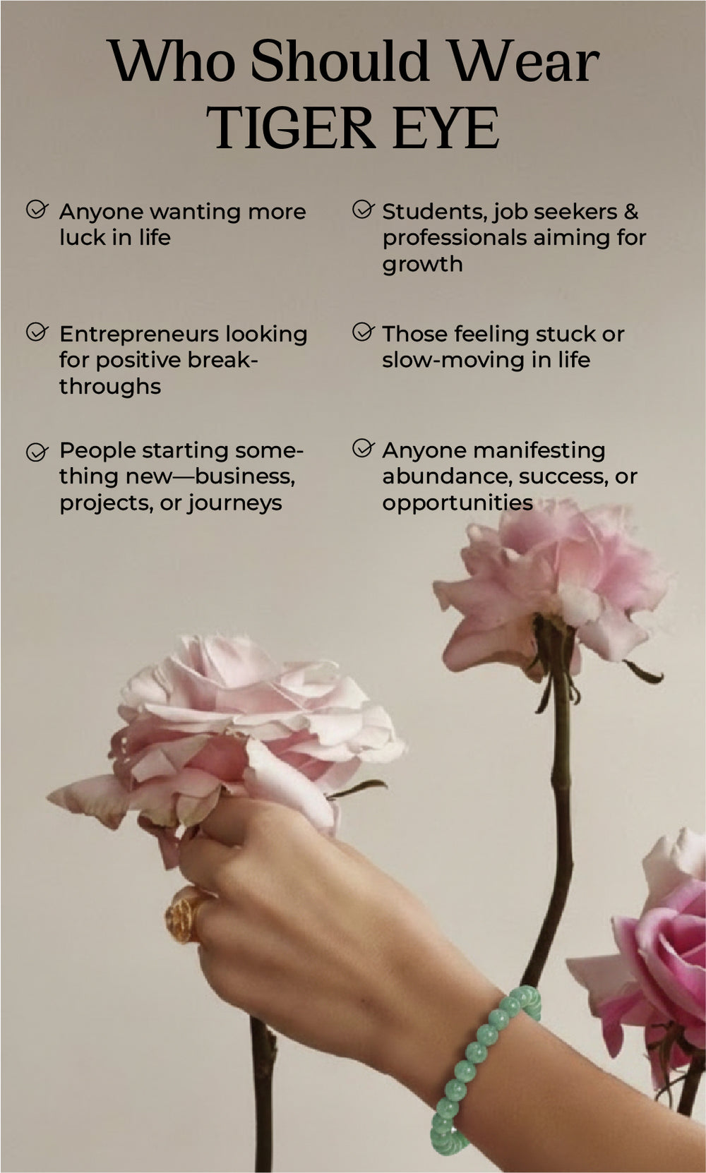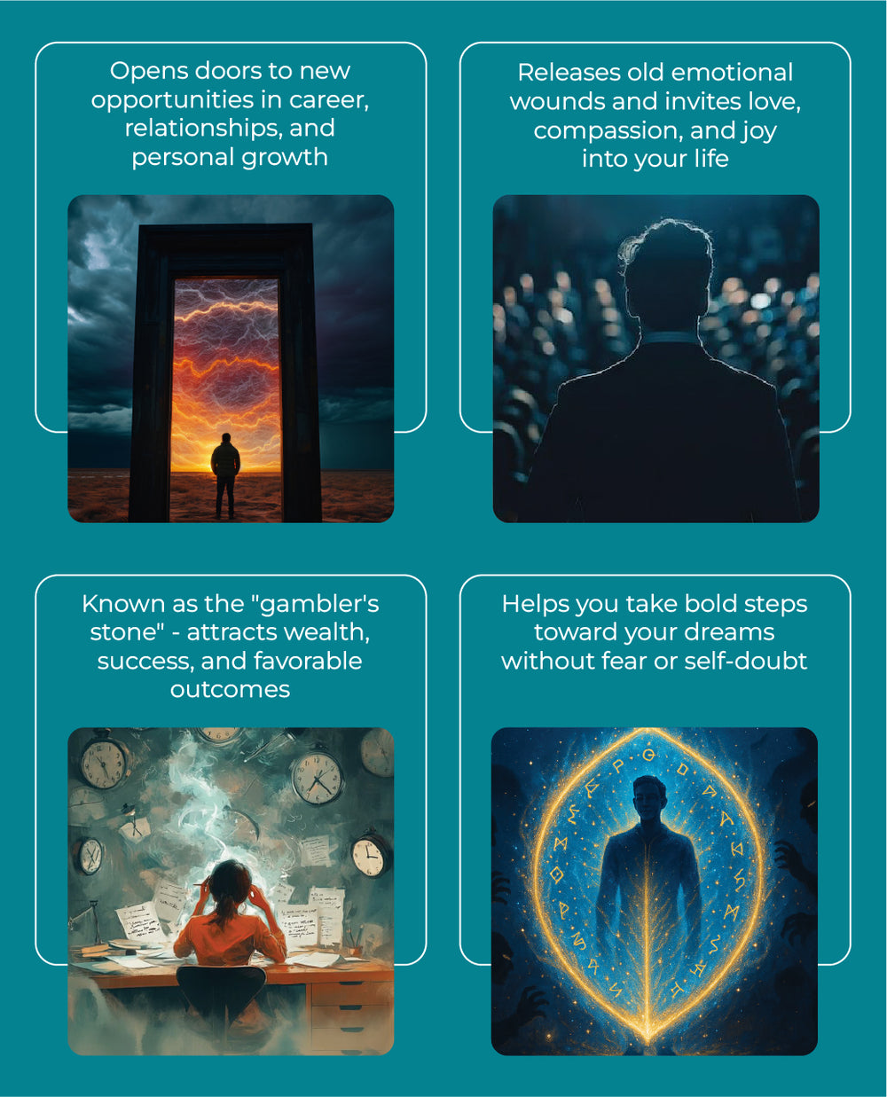 Known as the Stone of Opportunity, Green Aventurine is believed to attract luck, new chances, and positive breakthroughs. It opens doors, boosts optimism, and brings good fortune in career, money, and personal grow