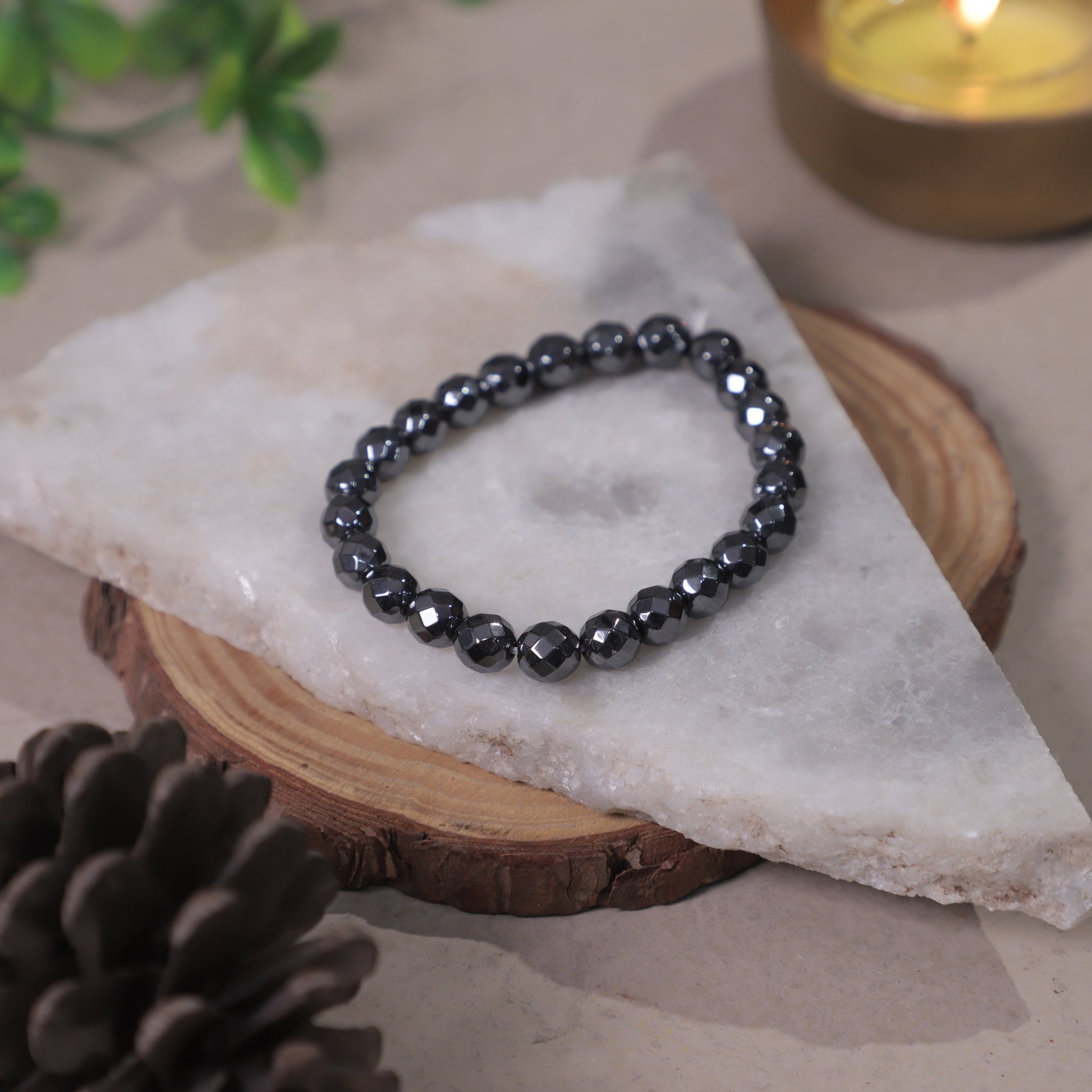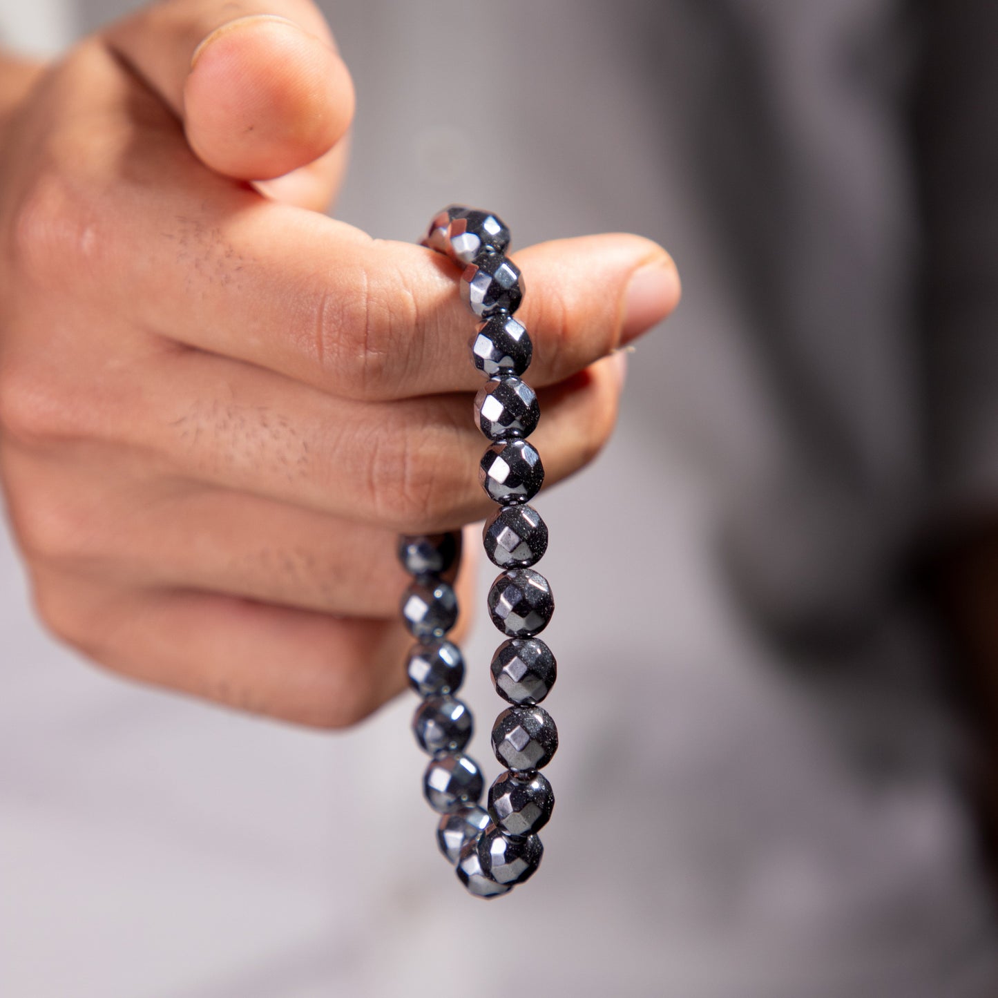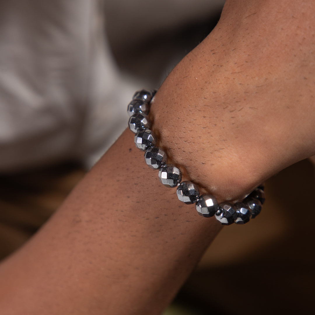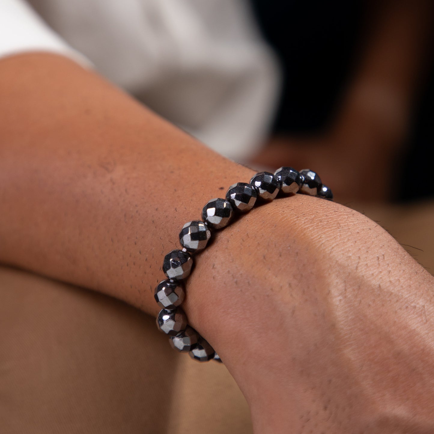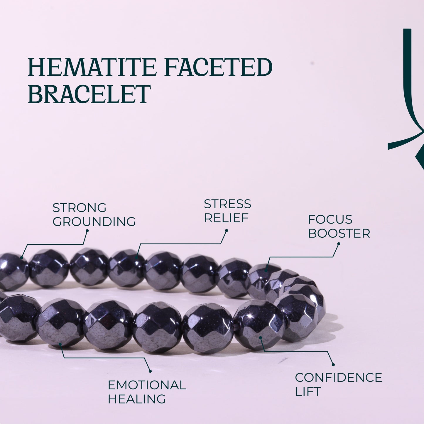Made with glossy, faceted hematite beads, this bracelet provides both a stylish metallic look & strong grounding. Hematite is known for magnetic qualities that help in emotional healing & improve focus. It's especially helpful for those who need stress relief & stability in their daily lives