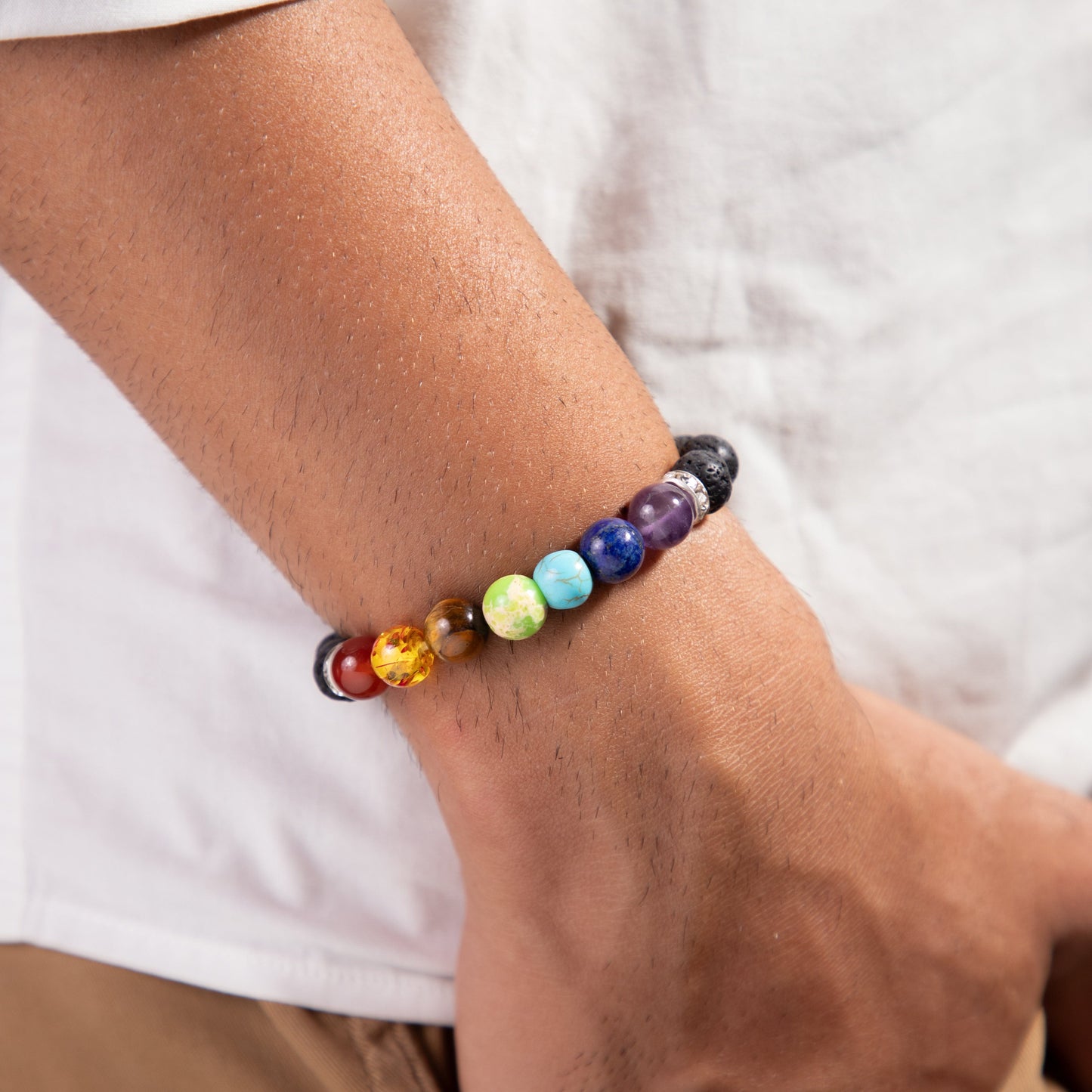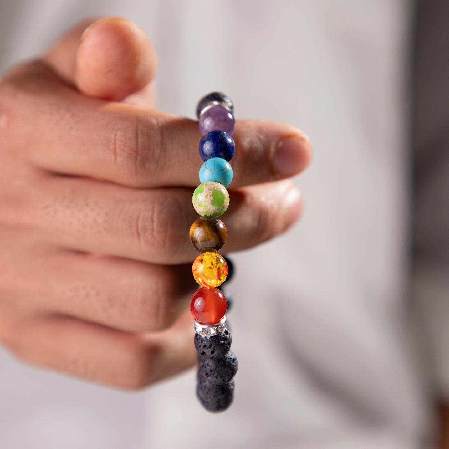 Combining a lava stone bracelet with 7 chakra beads in a single bracelet creates a versatile energy for holistic wellness.