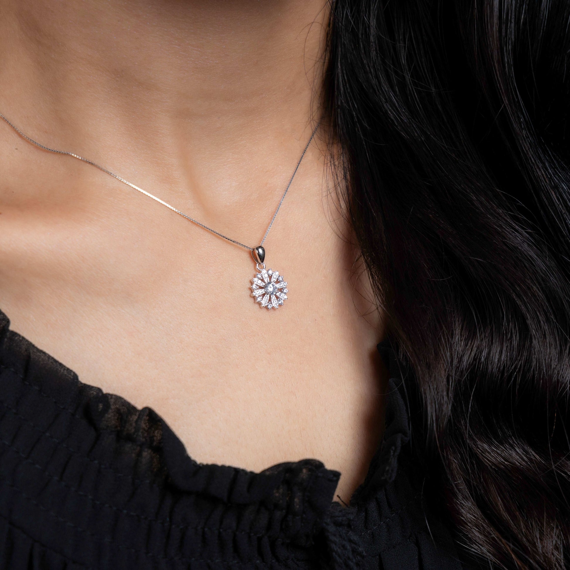 This pendant is perfect for the winter months. Its gentle design evokes the beauty of fresh snowfall and adds a serene, elegant touch to any outfit.