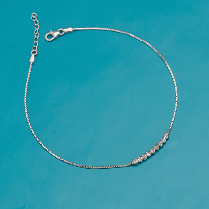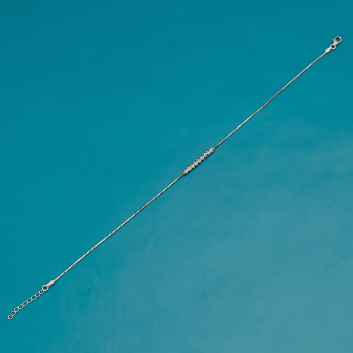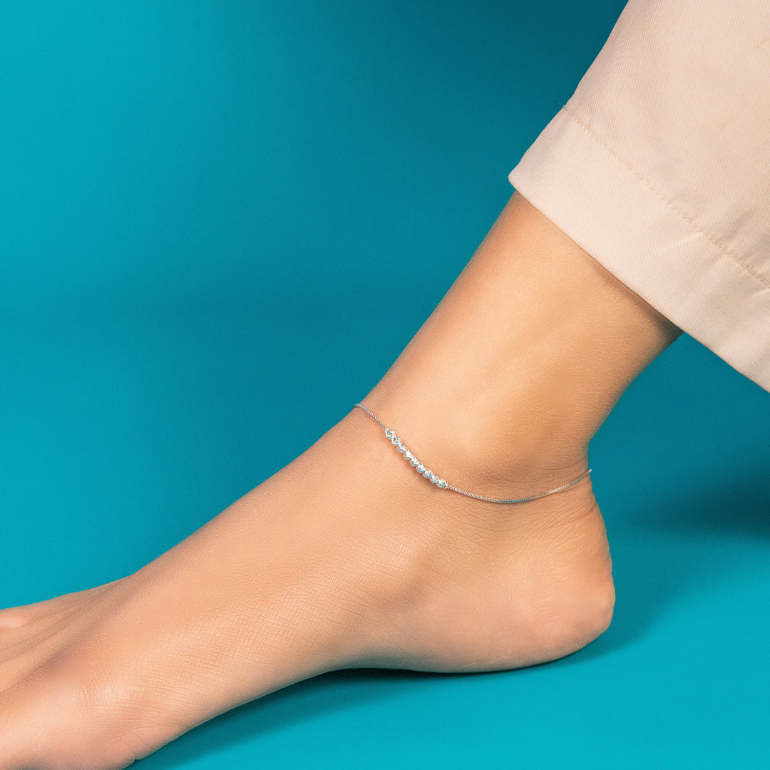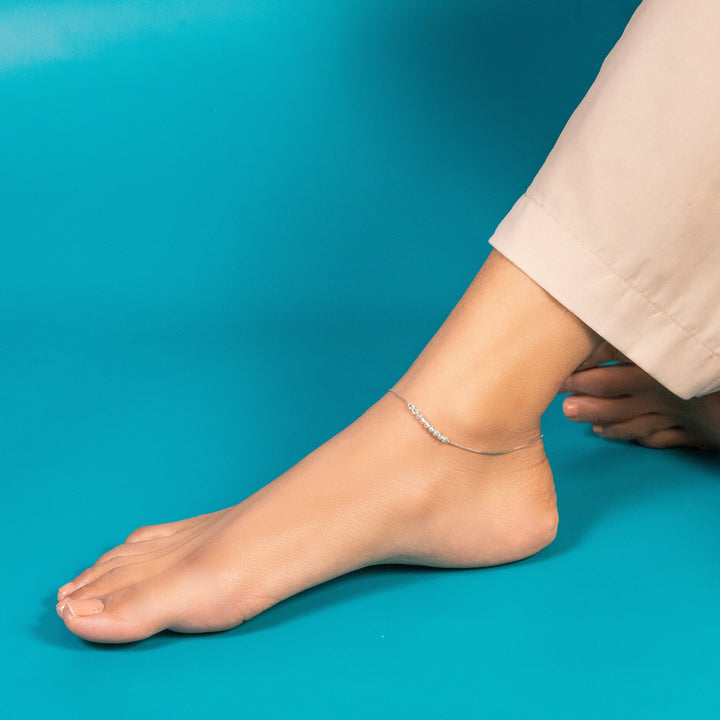 The adjustable clasp ensures a comfortable fit for any size, making it a versatile addition to any jewelry collection. Whether worn alone for a subtle touch of sparkle or layered with other pieces, this anklet effortlessly elevates any outfit with its enchanting charm.